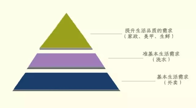 吃饭,肯定是基本生活需求。洗衣,是基本需求,但是否外包洗衣,视用户的生活条件和习惯而定,可算作“准基本”。家政、美甲、生鲜,属于提升生活品质的需求。