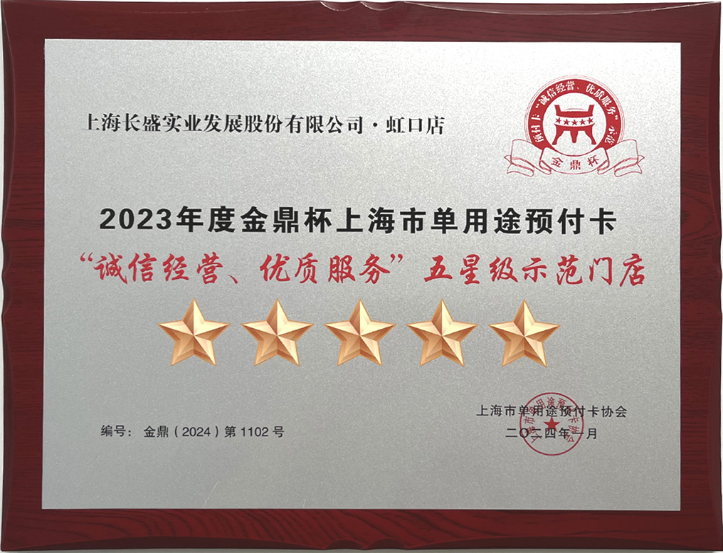 2019-2024连续六年获得上海市单用途预付卡“诚信经营 优质服务”四星级示范门店及五星级示范门店;